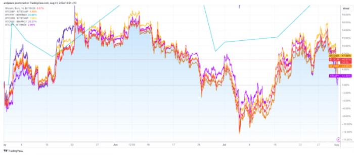 近期對CEX上Bitcoin(BTC)與法定貨幣交易對的分析揭示了其表現(xiàn)的顯著差異,特別是在全球平均價格背后的細(xì)節(jié)。這些差異反映了流動性,地緣政治和經(jīng)濟擔(dān)憂以及市場情緒對交易對表現(xiàn)的影響。