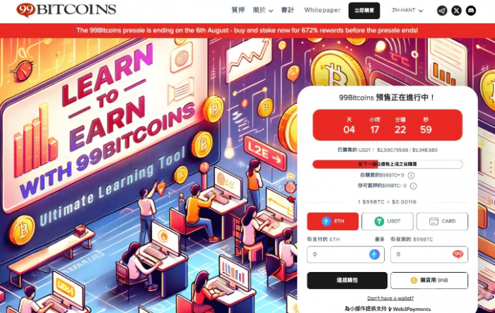 99Bitcoins預(yù)售籌集250萬美元,開發(fā)者準(zhǔn)備DEX上市