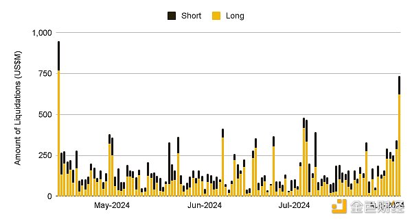 圖3:8月5日,各大交易所的交易員遭遇超過8.19億美元的清算