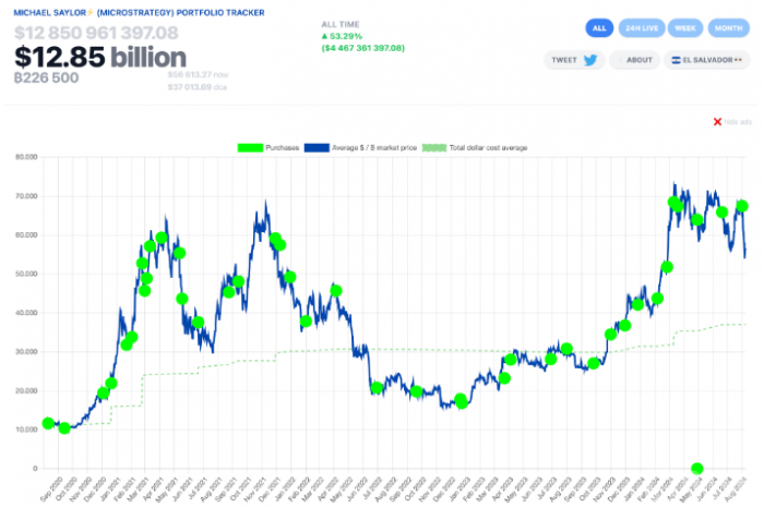 Saylor表示:“我個人持有大量Bitcoin。四年前,我在推特上公布了我擁有17,732個Bitcoin的消息。從那時起,我沒有出售任何Bitcoin,反而繼續增加我的持倉?!北M管Saylor并未透露他截至2024年持有的具體Bitcoin數量,但根據他2020年的公開數據,他的初始投資現已增長至約9.96億美元。