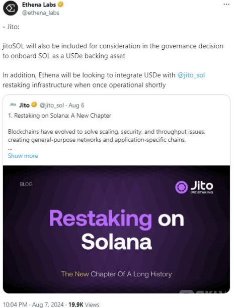 Ethena Labs 將 USDe 穩定幣引入 Solana 生態系統,SOL 和 JitoSOL 可能成為新抵押品