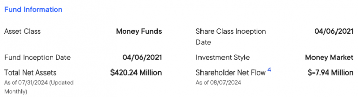 據富蘭克林鄧普頓介紹,FOBXX基金將其總資產的至少99.5%投資于由美國政府完全抵押的美國政府證券、現金和回購協議。該基金旨在通過這些安全的投資工具,為機構和散戶投資者提供穩定且較高的回報。截至7月31日,FOBXX的管理資產約為4.2億美元,成為市場上第二大貨幣市場基金。
