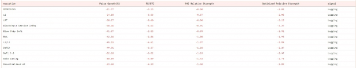 根據(jù)Dune數(shù)據(jù),Bitcoin在過去90天內(nèi)的跌幅為4.13%。另外,在監(jiān)測的11個板塊中,過去90天內(nèi)均出現(xiàn)下跌。其中,MEME幣板塊跌幅最小,為21.37%,Layer1板塊跌幅為24.1%,顯示出相對抗跌能力。而鏈游和AI板塊跌幅最嚴(yán)重,分別下跌了60.69%和63.6%。