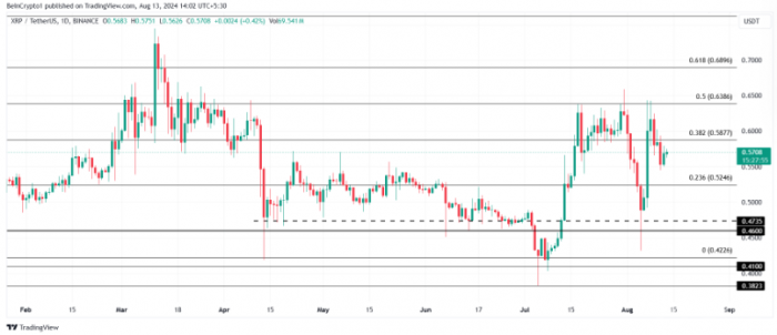 過去四周,XRP價格兩次未能守住38.2%斐波那契回撤線(0.58美元),這反映出投資者的信心疲軟。盡管其他山寨幣在經歷下跌后有所恢復,但XRP的情況卻顯得較為特殊。若市場繼續承壓,XRP價格可能會下探至0.52美元的支撐位。
