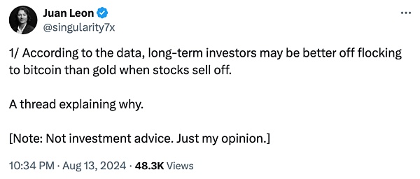 意思是說,當(dāng)美股下跌時(shí),BTC并不總是會(huì)上漲,從而表現(xiàn)出避險(xiǎn)特征。有時(shí)候,它會(huì)不動(dòng);有時(shí)候,它也會(huì)下跌。
