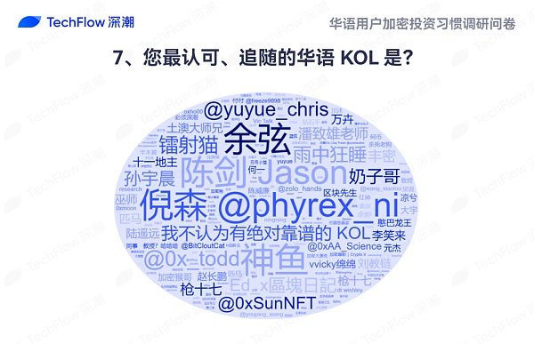 本次問卷調研中,我們對當前受訪者的加密偶像進行了數據收集,本題為非必答題,感興趣的受訪者可以填寫提交,根據提及頻率,我們制作了詞云展示。