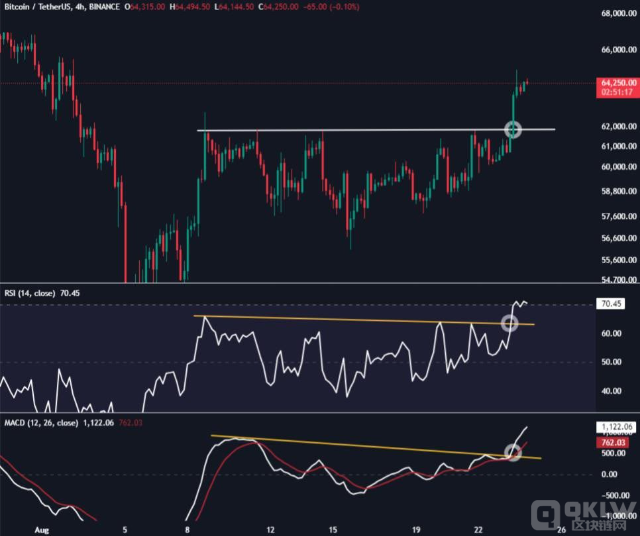 在一則8月24日的分析視頻中,一位匿名交易員Crypto先生指出,一旦Bitcoin超越64,000美元,將很有可能再次沖至68,000美元,這是8月30日曾觸及的價位。
