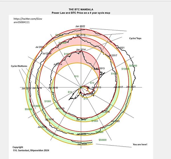 周期的峰值可能比我們預期的要大,而不是像過去那樣下降,它可能會像一些早期的峰值一樣大。但這些只是“局部”效應(它們涉及此時此刻的變化),而不是長期軌跡。正如我多次說過的,Bitcoin遵循冪律這一事實是健康和力量的標志,我們希望支持這一點。但就理解BTC的規(guī)模不變性而言,它們不會改變BTC的長期軌跡,因為沒有證據表明ETF從規(guī)模角度理解時與所有其他事件不同。也許我需要對此進行深入研究,并證明BTC的資金流入與BTC價格具有某種雙對數關系,并表明它像價格本身一樣具有規(guī)模不變性,但目前這是我的直覺和理解規(guī)模不變的系統(tǒng)建議。
