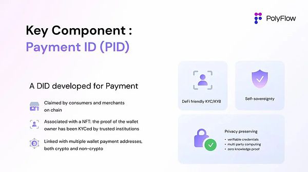 PolyFlow推出了PaymentID(PID)和PaymentLiquidityPool(PLP)兩個關(guān)鍵組件: