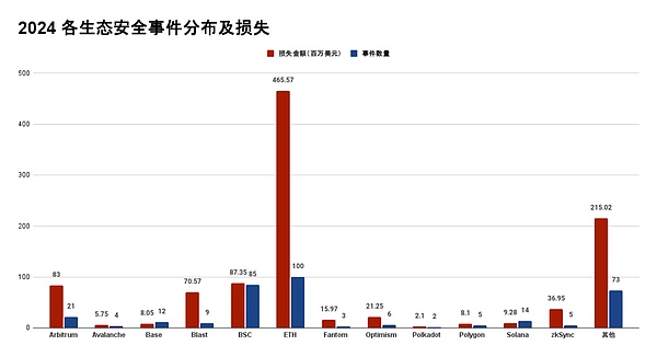 根據慢霧Blockchain被黑事件檔案庫(SlowMistHacked)統計,2024年共發生安全事件410起,損失高達20.13億美元。對比2023年(共464件,損失約24.86億美元),損失同比下降19.02%。
