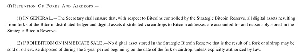 協議還應明確指出,盡管Bitcoin資產被存儲在戰略Bitcoin儲備的獨立賬戶中,國家依然保留對這些隔離賬戶中所持有的Bitcoin的所有權及相關法律權益。這包括了因Bitcoin網絡發生分叉或空投事件而產生的任何新的數字資產的所有權。