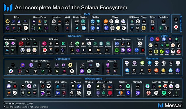 另一方面,這并不意味著Solana就不存在問題,就目前的結構來看,盡管DeFi、DePin亦是火熱,但Solana的確高度依賴MEME生態。根據Messari發布的2024年第四季度的數據,Solana應用收入從第三季度的2.68億美元躍升至年末第四季度的8.4億美元,增長高達213%,而這一增長,主要歸因于MEME。其中Pump.fun在第四季度產生收入達到了2.35億美元,DeFi交易終端Photon和DEXRaydium,分別錄得1.4億美元和7400萬美元的收入。