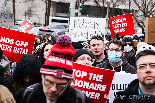 圖:勞工團(tuán)體成員抗議馬斯克和政府效率部。攝影:ValeriePlesch/《紐約時報》