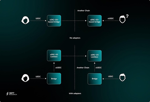 ERC-7281標(biāo)準(zhǔn)帶來的額外管理工作還會影響使用項(xiàng)目xERC-20Tokens的應(yīng)用程序開發(fā)人員和服務(wù)提供商。跨鏈橋聚合器需要跟蹤xERC-20Tokens與其對應(yīng)的Lockbox合約之間的映射關(guān)系,以防止垃圾郵件Tokens和欺騙攻擊等問題。雖然這些映射的注冊表可能有所幫助,但在不承擔(dān)中心化風(fēng)險(xiǎn)或使xERC-20采用者面臨威脅的情況下建立這樣的注冊表具有挑戰(zhàn)性。
