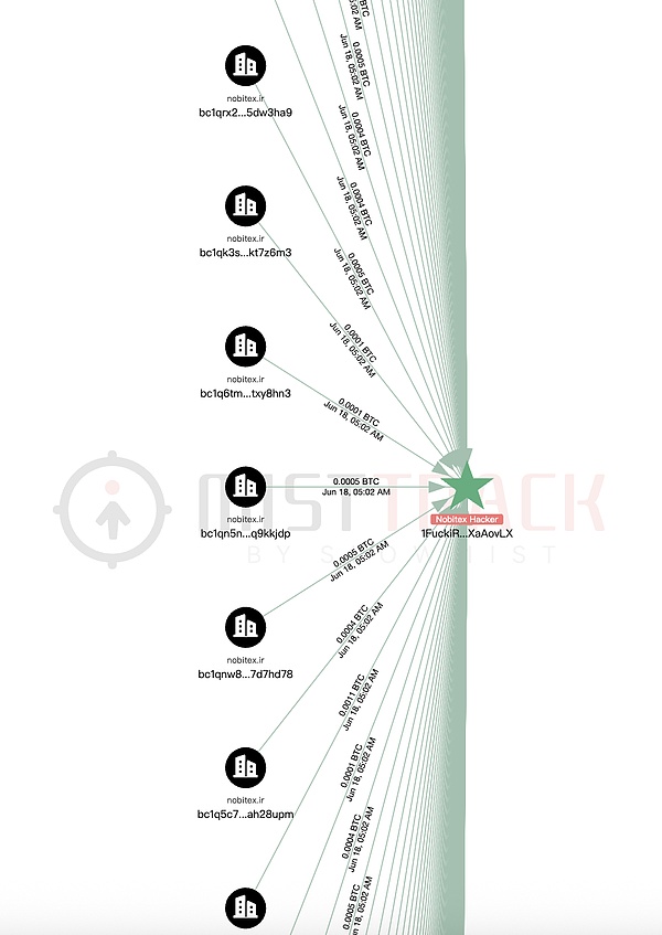 我們使用鏈上反*洗*錢與追蹤工具MistTrack進行分析,Nobitex的損失不完全統(tǒng)計如下: