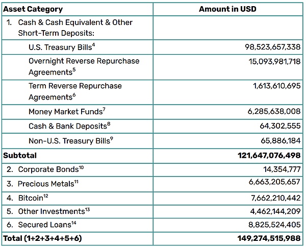 圖:2022–2024年Tether儲備資產構成。