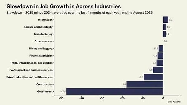 去年二月,我在一篇文章中指出,美國經(jīng)濟出現(xiàn)了“滯脹跡象”。“滯脹”是指國民產(chǎn)出和就業(yè)停滯不前或增長緩慢,而物價通脹卻持續(xù)上升甚至加速。美國經(jīng)濟顯然一直在放緩。季度增長率不穩(wěn)定,主要原因是進口大幅波動。今年年初,由于企業(yè)試圖“搶在”特朗普提高進口關稅之前,進口量激增;隨后,隨著關稅開始影響到工業(yè)所需的進口零部件,實際GDP增長放緩。但今年上半年,在特朗普執(zhí)政期間,經(jīng)濟明顯放緩。