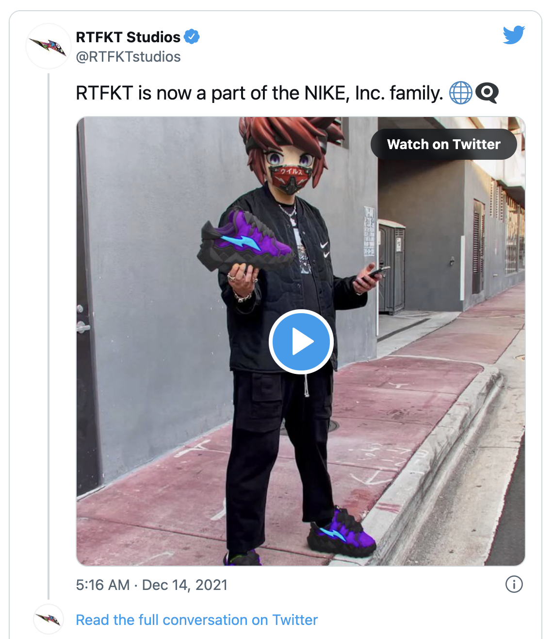 然而,新的 RTFKT 收購證實了耐克對深入研究元宇宙生態系統的興趣: