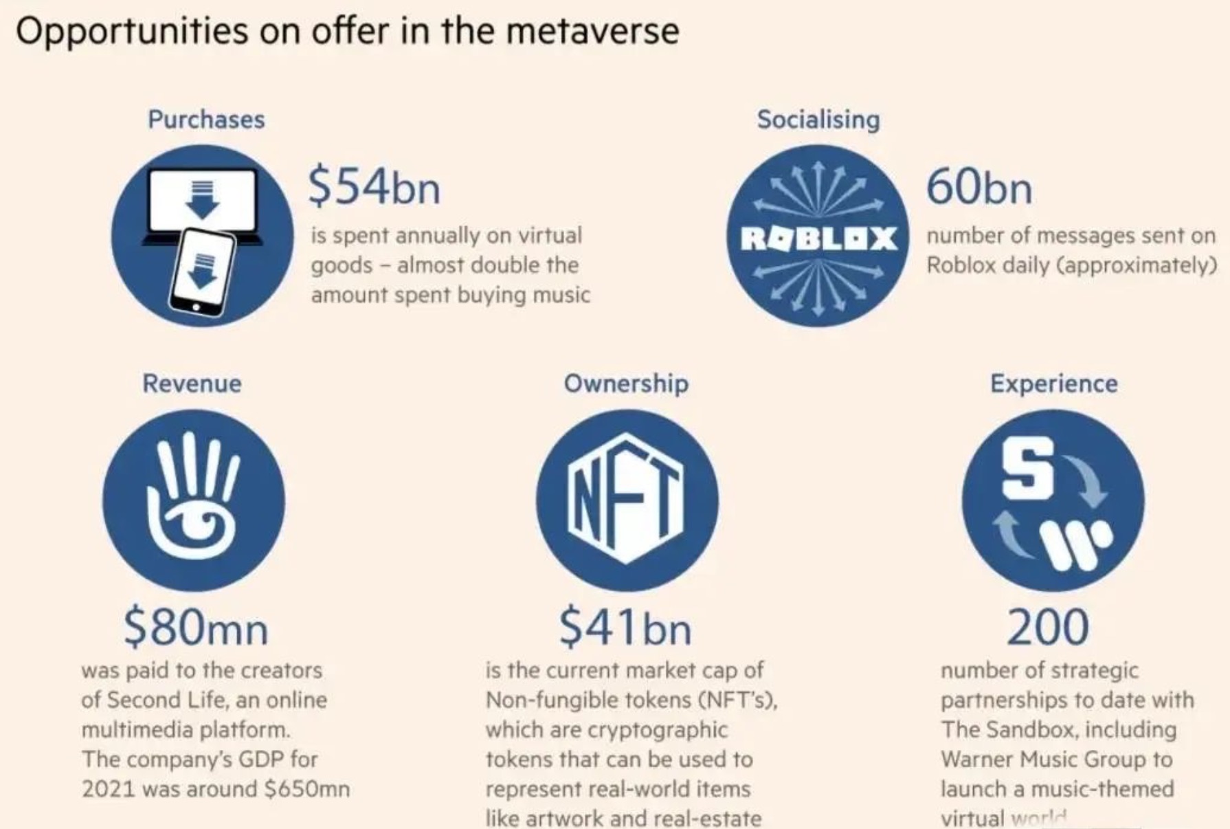 Facebook和微軟在內(nèi)的科技巨頭已經(jīng)投入了數(shù)百億美元的賭注,以創(chuàng)造支持虛擬世界的技術(shù),并將這一發(fā)展視為互聯(lián)網(wǎng)的下一次發(fā)展。Meta已經(jīng)承諾每年斥資100億美元開發(fā)自己的虛擬世界,期望有朝一日可能會出現(xiàn)像Forever21這樣的商店。Meta首席執(zhí)行官馬克扎克伯格談到他的愿景時說:“很多元宇宙體驗將圍繞著能夠從一種體驗傳送到另一種體驗。”因此,能夠擁有自己的數(shù)字商品,并將它們從一個地方帶到另一個地方,這將是人們未來進行的一項重大投資。