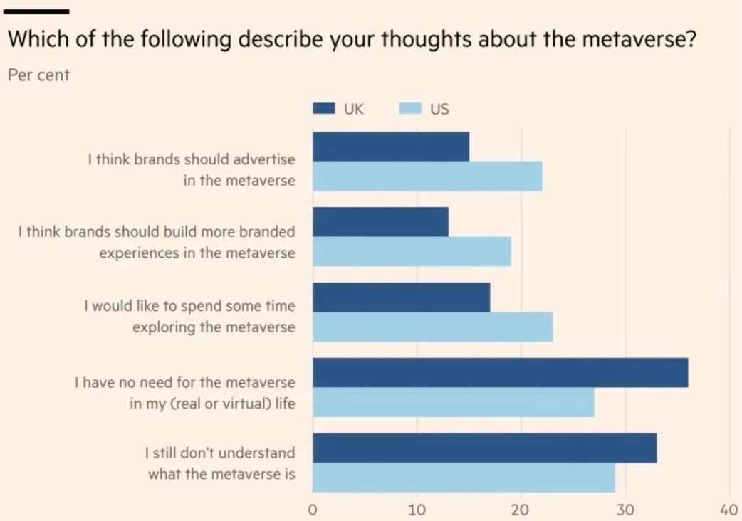 然而,在所有的炒作中,一些清醒的分析來自民意調(diào)查,表明更廣泛的公眾尚未接受這個想法。Roblox用戶對Forever21商店的支持率為39%。更廣泛地說,F(xiàn)orrester Research去年的抽樣調(diào)查表明,不到四分之一的美國成年人有興趣在虛擬世界中度過時光。對于那些潛入其中的人,專家們對消費者可能會受到的各種體驗提出了一些警告。