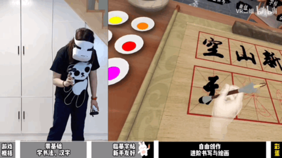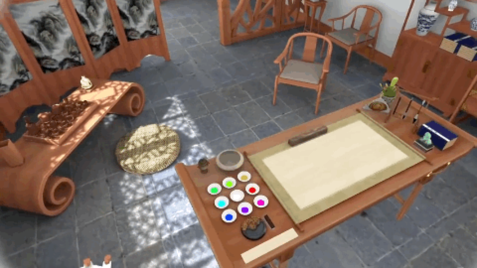 眼前這個(gè)穿越景象,既不是小說中的場(chǎng)景,也不是在文化景區(qū)內(nèi),而是發(fā)生在VR虛擬世界中。95后資深VR玩家小敏告訴我們,這是前不久在愛奇藝奇遇VR上線的cn書法模擬應(yīng)用《墨之韻》,玩家可以利用墨汁和毛筆在虛擬宣紙上進(jìn)行無障礙創(chuàng)作,感受傳統(tǒng)書法藝術(shù)。