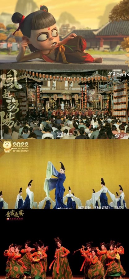 影視方面,從《大圣歸來》到《哪吒之魔童降世》的熱映,證明觀眾非常認(rèn)可用最新動(dòng)畫技術(shù)對(duì)古典神話進(jìn)行當(dāng)代解讀;愛奇藝發(fā)布“華夏古城宇宙”IP系列,相繼推出《風(fēng)起洛陽》《風(fēng)起隴西》新作,帶領(lǐng)觀眾領(lǐng)略了中華傳統(tǒng)文化風(fēng)貌。電視節(jié)目上,傳統(tǒng)文化類舞蹈節(jié)目更是出圈,《唐宮夜宴》展現(xiàn)盛唐美景,《國(guó)色天香》引領(lǐng)國(guó)潮漢服文化,《只此青綠》展現(xiàn)大宋千里江山,在全民層面將漢服文化、傳統(tǒng)樂器與國(guó)風(fēng)舞蹈等扎根傳統(tǒng)文化的藝術(shù)瑰寶推至新高峰。