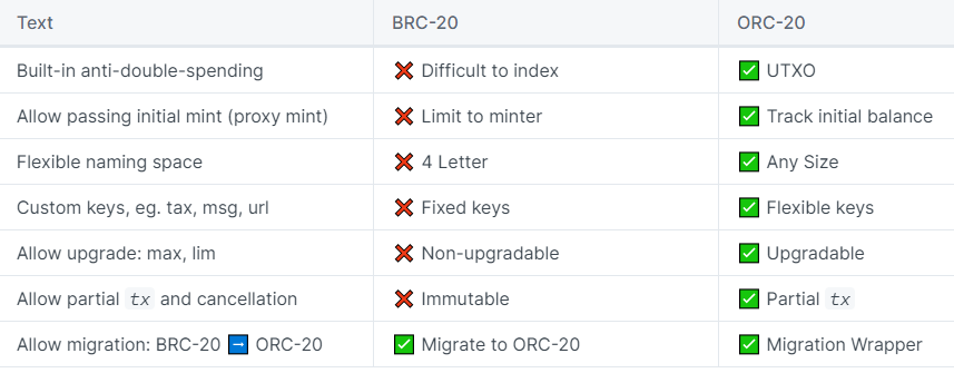 ORC-20 在 BRC-20 基礎上,通過多項改進,帶來了以下優勢:
