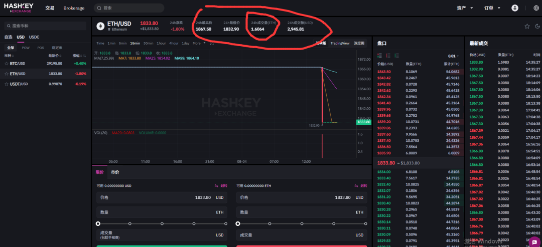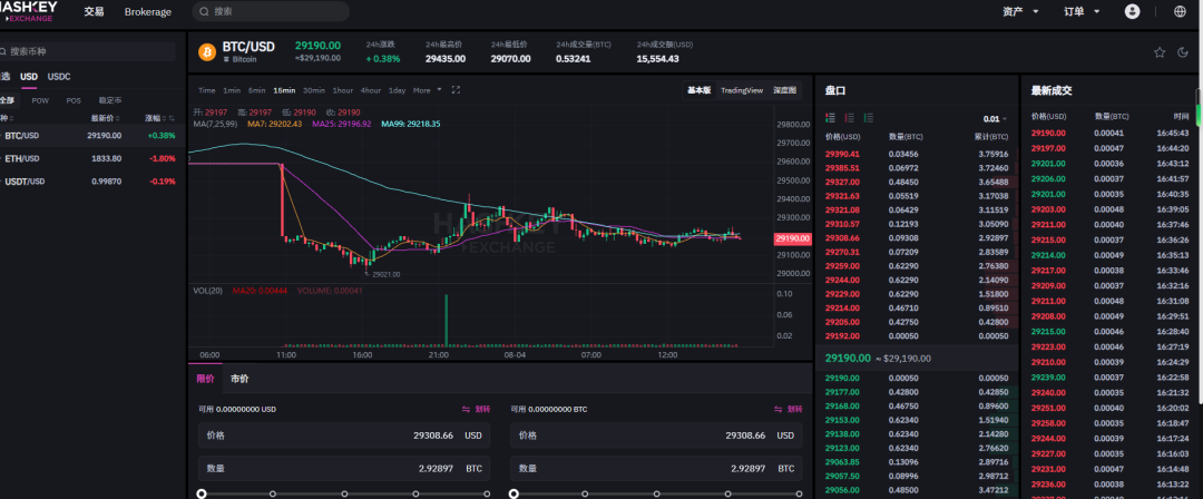 目前 Hashkey 只提供 5 個(gè)資產(chǎn)與 7 個(gè)交易對(duì),包括 BTC ETH USDT USDC 和 USD;OSL 只提供 BTC 與 ETH。不過(guò)流動(dòng)性并不是很好。