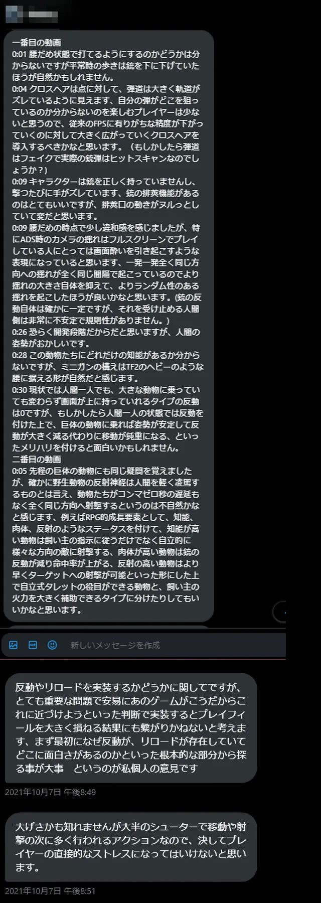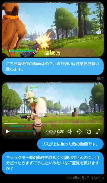 那個系統很好,因為是那個人實現的;他是擅長制造動作的工程師,多虧了他,我才有了好的動作;那個角色設計,交給他真是太好了;雖然給了他很多復雜的要求,但他成功地完成了;順便說一下,他也只是在Twitter上偶然找到我并與我聯系的。