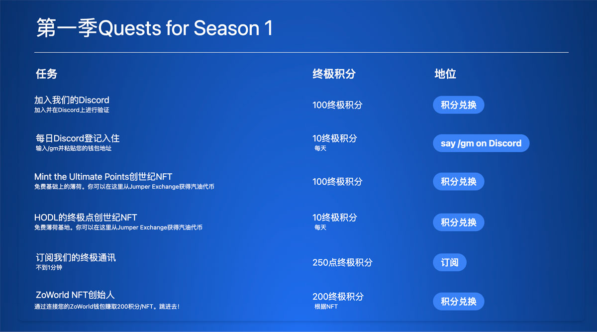 6.持有Ultimate Points Genesis NFT(免費基礎鑄幣)將每天額外獎勵10點Ultimate Points。