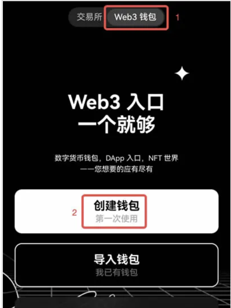 歐易Web3錢包支持App/Web/插件三端,滿足所有應用場景。創建錢包是一個非常簡單的操作,即使是新手用戶也能迅速上手。如果你已經創建過錢包,且不希望新增地址,那么直接跳到【3. 如何導入錢包】。