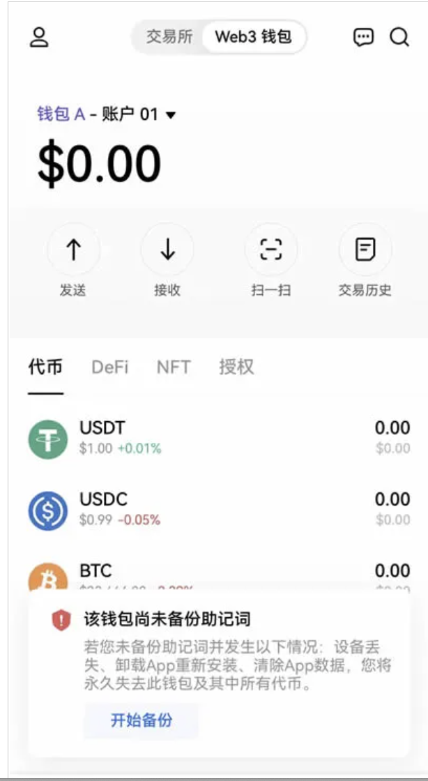 歐易Web3錢包不會在服務器上保存你的助記詞或私鑰,一旦丟失資產將無法恢復,歐易也無法幫你找回錢包。