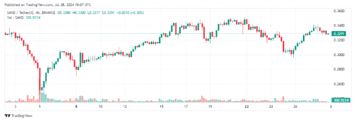 另一種備受關(guān)注的crypto是沙盒(SAND)。與MANA類似,SAND的價格在2021年11月達到了峰值,超過7美元。截至目前,SAND的價格為0.31美元,較其ATH下跌了95%。