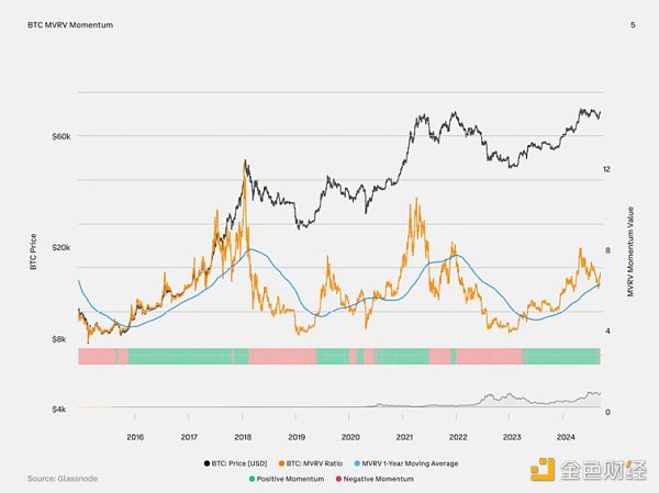 1、MVRV(市值和實現價值比)及市場趨勢: