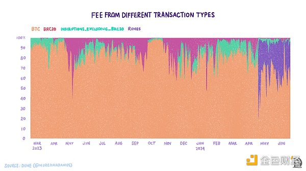 Ordinals協議是一種利用BitcoinUTXO的方式,它以不同的方式看待單個Satoshis(BTC的最小單位),它帶來了像銘文(Bitcoin上的NFT)這樣的創新。對序數和銘文的熱情催生了BRC-20和符文等可替代標準的演變。銘文和符文推動了Bitcoin活動。僅BTC轉賬,每日總交易量就增加了70%。